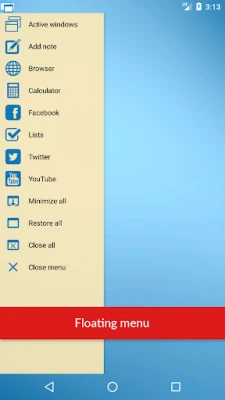 Rasakan multitugas riil di Android Anda dengan Floating Apps (multitasking). Buka banyak aplikasi serentak dalam jendela melayang. Tonton YouTube, gunakan kalkulator atau lihat nota tanpa meninggalkan aplikasi utama. Tingkatkan produktiviti anda.