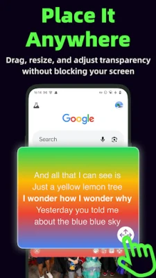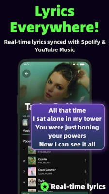 Dapatkan lirik terapung yang disegerakkan dengan sempurna untuk lagu-lagu Spotify dan YouTube Music kegemaran anda. Lirik akan sentiasa muncul di atas aplikasi lain, memudahkan anda bernyanyi sambil bermain game, berbual atau bekerja tanpa gangguan. Nikmati muzik anda sepenuhnya.
