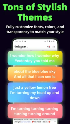 Pengalaman anda kini sepenuhnya di bawah kawalan. Laraskan paparan lirik mengikut keselesaan anda dengan kawalan seret dan ubah saiz yang intuitif, serta kebolehan menyesuaikan antara 3 hingga 7 baris teks secara pintar. Aplikasi ini juga menyokong penukaran bahasa antara Cina Ringkas dan Tradisional, lengkap dengan terjemahan rasmi untuk memastikan kefahaman yang meluas. Tiada lagi kerumitan penyegerakan manual; aplikasi ini secara automatik mengesan lagu yang sedang dimainkan sebaik dilancarkan, membolehkan anda terus bermula tanpa sebarang penangguhan. Pilih daripada lebih 10 tema visual yang menarik, latar belakang gradien yang menenangkan, dan animasi yang lancar untuk memperibadikan pengalaman anda mengikut citarasa.