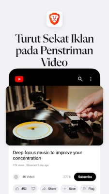 Penatkah anda dengan pengalaman melayari web yang perlahan, dibanjiri iklan mengganggu, dan sentiasa bimbang tentang privasi anda? Pelayar Laman Sesawang Brave mengubah landskap pelayaran digital anda di Android, menawarkan kelajuan luar biasa digabungkan dengan keselamatan tanpa kompromi. Dengan penghalang iklan terbina dalam yang canggih, Pelayar Laman Sesawang Brave secara automatik menyekat iklan pihak ketiga yang mengganggu, pop timbul, dan ancaman perisian hasad, memastikan laluan digital anda sentiasa bersih dan lancar. Nikmati persekitaran web yang pantas dan fokus, bebas daripada gangguan yang tidak diingini.